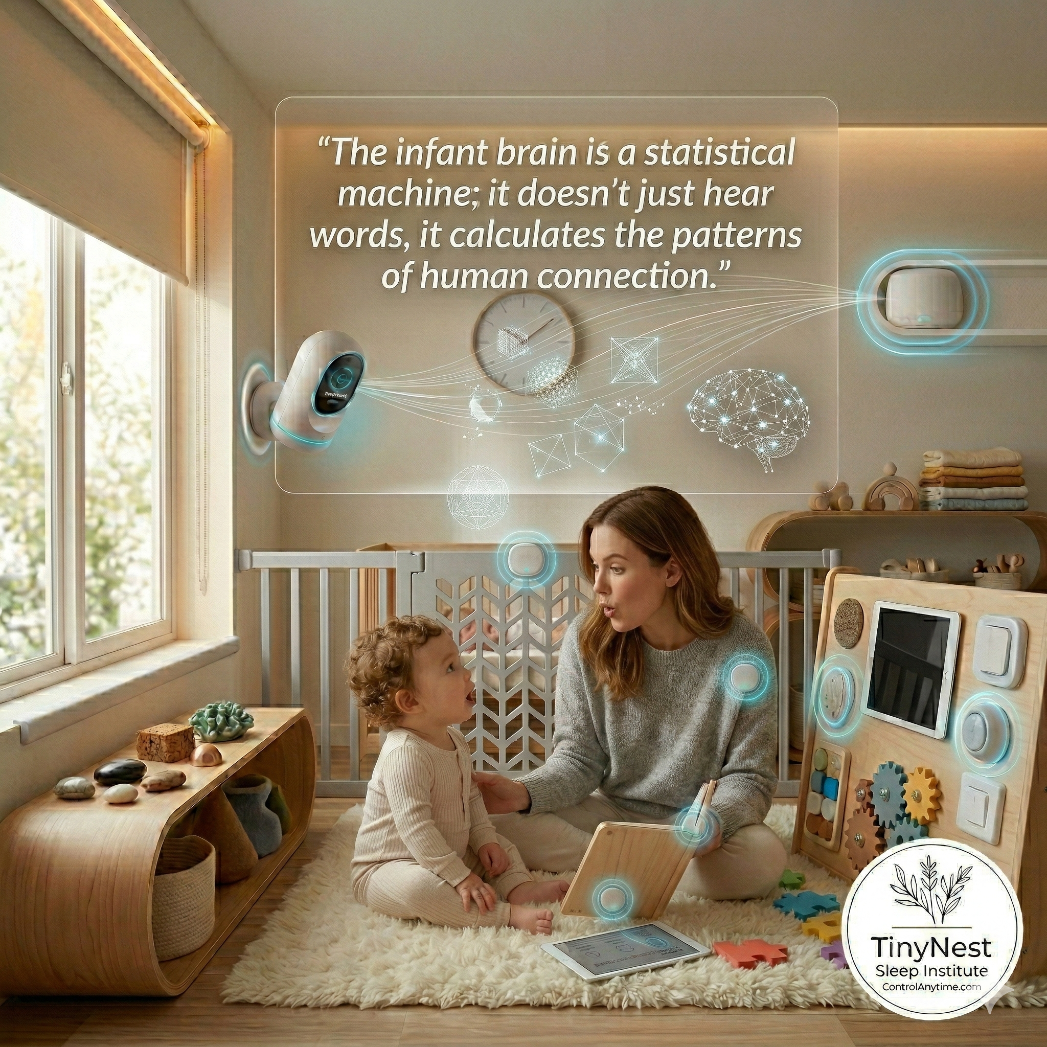 “The infant brain is a statistical machine; it doesn’t just hear words, it calculates the patterns of human connection.”